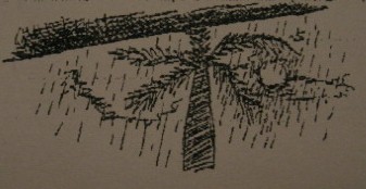補充:也裡躺在學校的走廊下,望著天空下著15天來的第一場雨,雨下得很急,而月亮卻也一直亮著。
