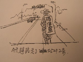 午後,我們進到郵局,吹著舒服的冷氣,寫昨日的旅行筆記,郵局很縱容地讓我們霸佔了一角幾個小時,很感激他們。隨後在7-11發Fax回台北,7-11的女店員看到我們的筆記和小插圖,更是驚訝和欣賞萬分,又和我們聊了我們的行程。在將我們部落格的地址轉給她們後,帶著他們的加油和祝福,我們又踏上前往台東的行程。上回的挑戰夜行軍沒有成行,維維今天又設定再挑戰一次。