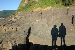 在三貂角,再踏在太平洋海水和我們土地的交會處最東端,海浪滾滾衝擊在平坦的岩石上,水深不過鞋,維維踏步進水裡,快樂地試他的Gore-tex防水鞋。再上三貂角燈塔,遠眺無盡的雲霧迷濛的太平洋後,從梗枋漁港再出發。