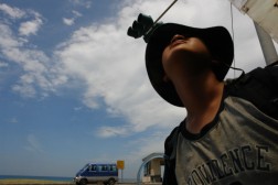 我們頂著酷熱的太陽向台灣的最東角 ─ 三貂角前進。我們父子在福隆的Seven買了一罐海尼根(啤酒),要在我們到達三貂角時「開啤酒」。
